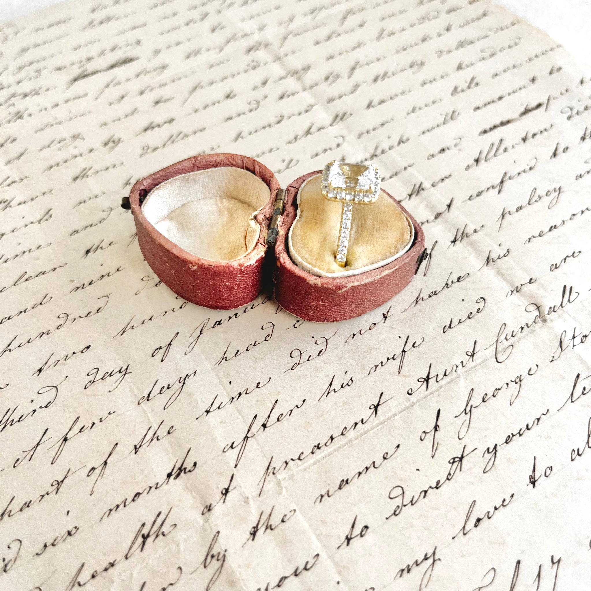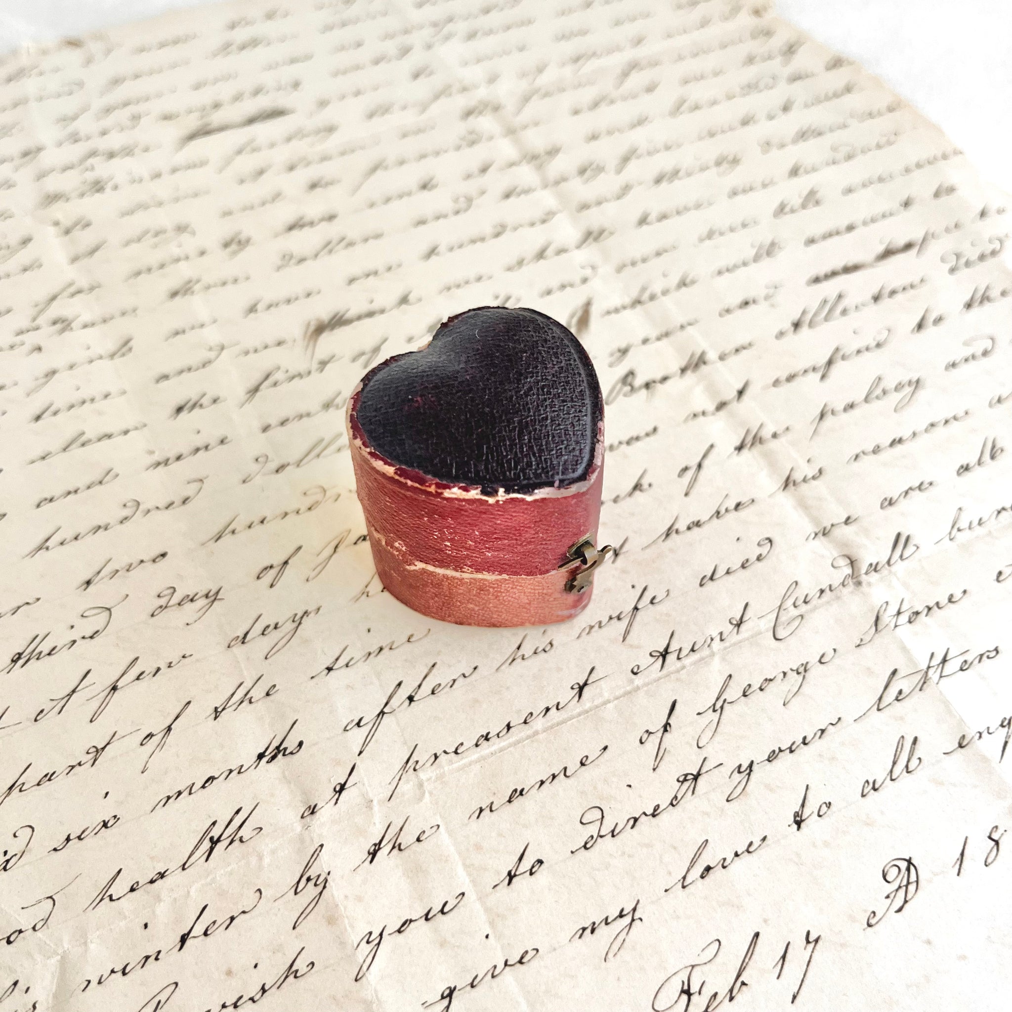 As with all antique items, signs of wear and patina are present and contribute to its unique character. Whether used to present a ring, styled in a romantic wedding flat lay, or treasured as a collectible, this heart-shaped box is a rare and sentimental find.