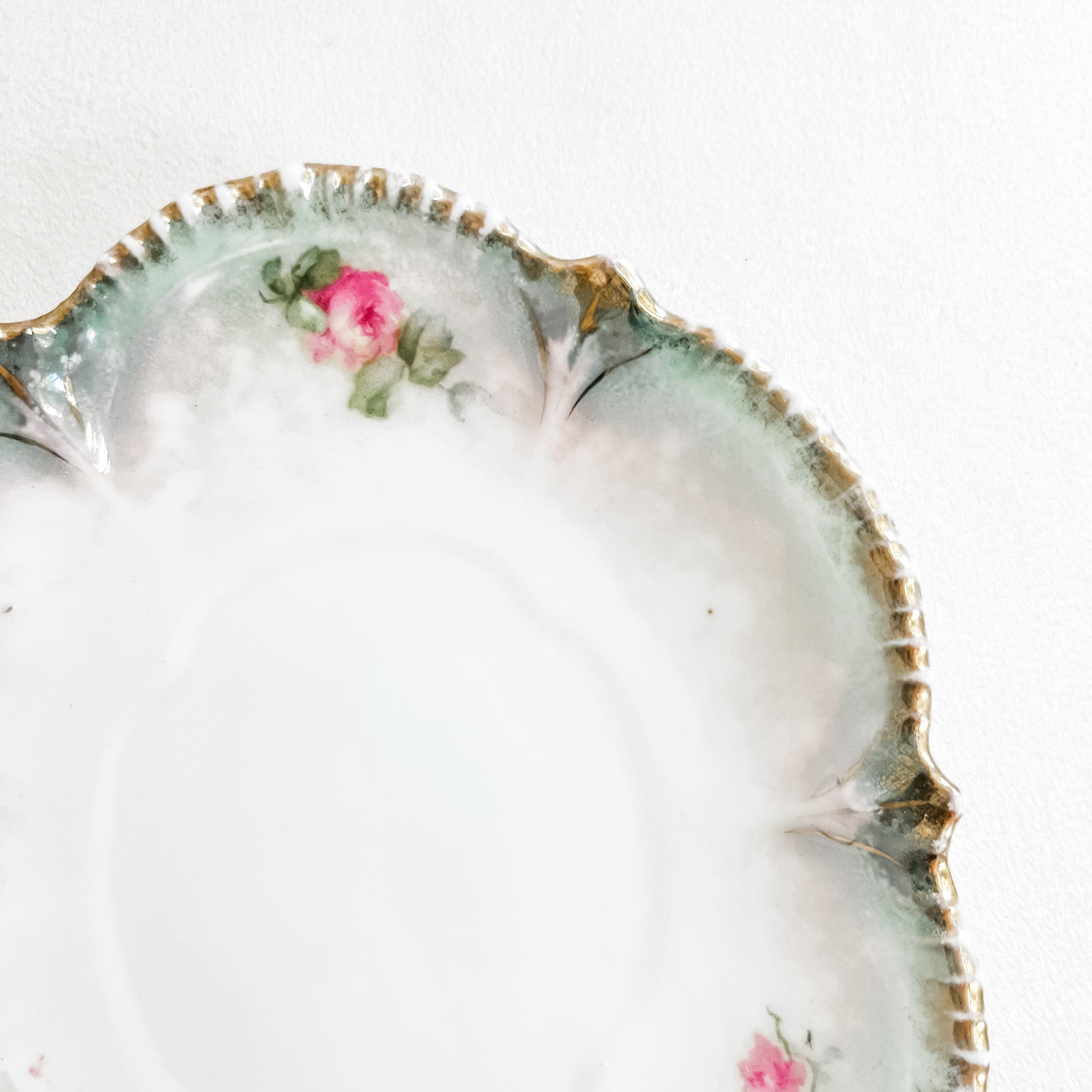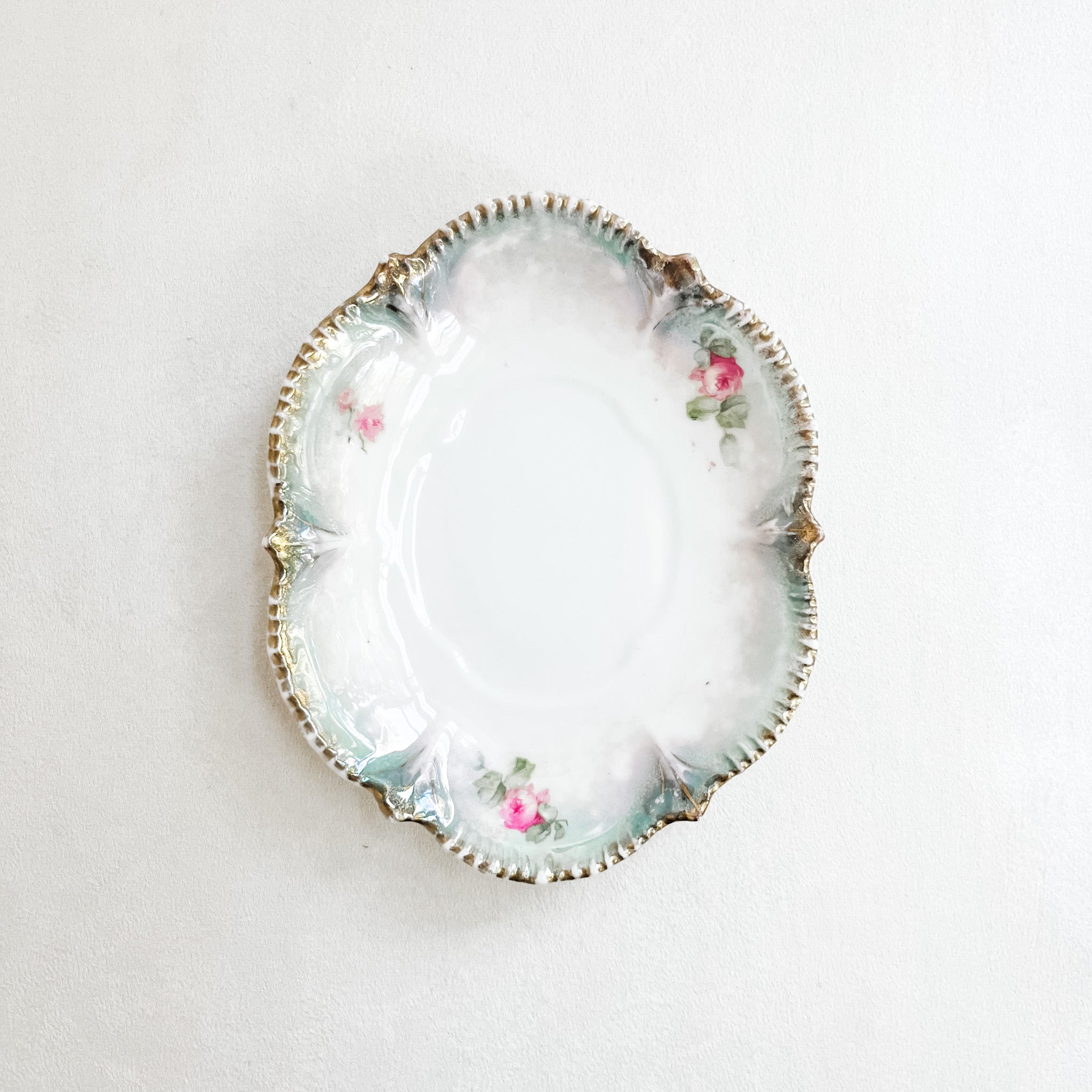 This is THE perfect dish to have in your styling kit. The size at 5"x6" is the perfect size and would work with most wedding styles. It has a beautiful beaded gold trim and can be used to hold flowers, jewelry, RSVP cards and so much more!